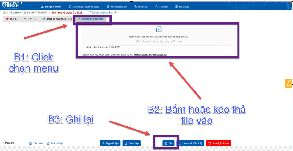 Cách đính kèm file trong phần mềm BHXH VNPT ?
